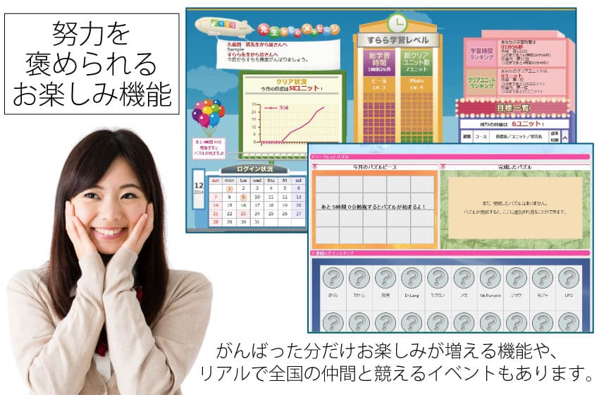 すららは、「すららコーチ」「保護者」「本人」の三者で毎週無理の無い学習計画を立て、15分のスモールステップで勉強の理解が深まることで、「勉強の成功体験」を積み重ねていくことができます。また、「分からなかったら、前の範囲に戻って、分かればどんどん進んで」という、本人のペースに合わせた学習で、本人のやる気を無くさせません。努力を見逃さないすららコーチが「よく頑張ったね!」と声をかけながら帆走するので、勉強・学習の習慣のない勉強嫌いのお子さんこそ楽しく学べる教材です。