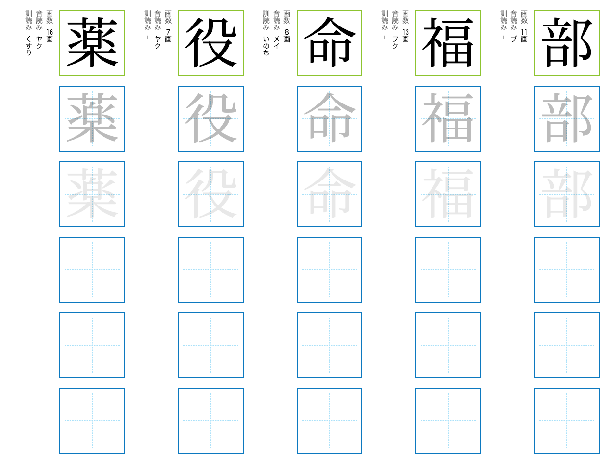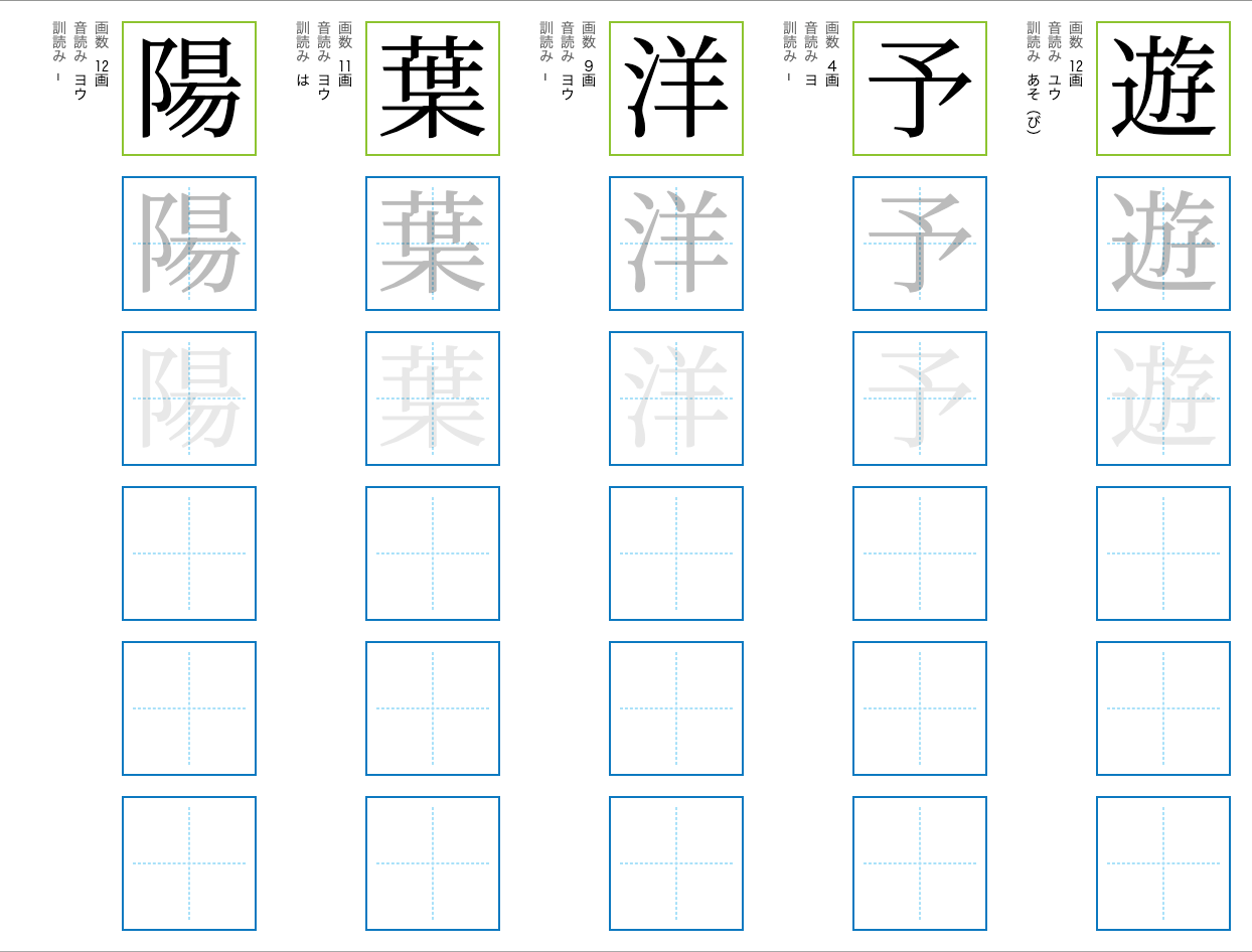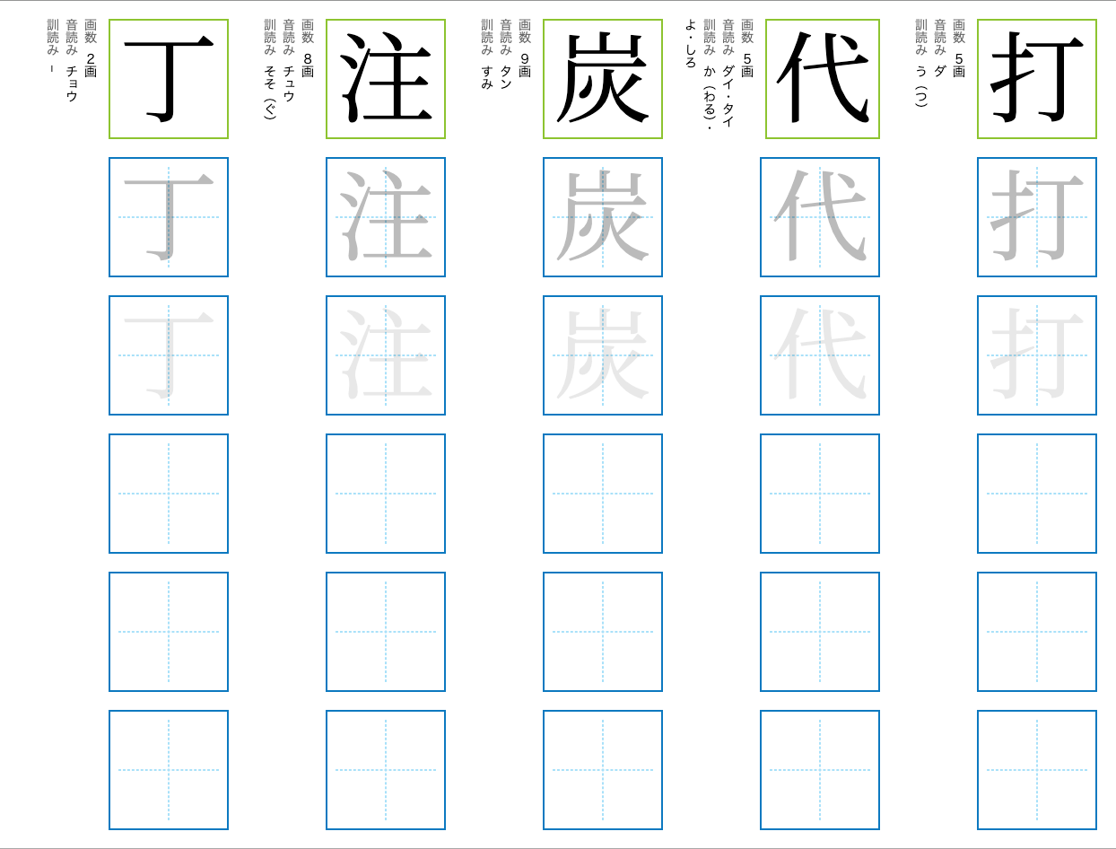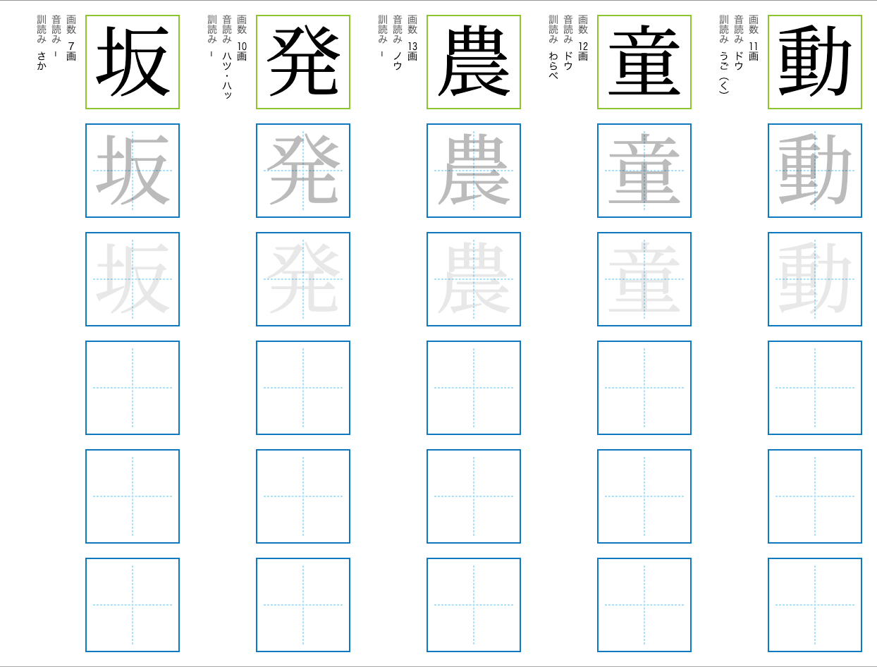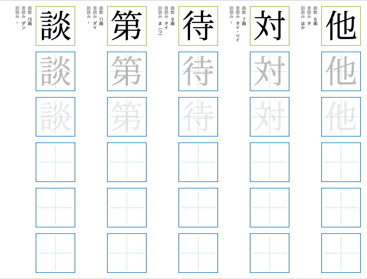 1学期から3学期まで順を追って練習していく際に、特定の漢字を選んで学習プリントを印刷することができます。