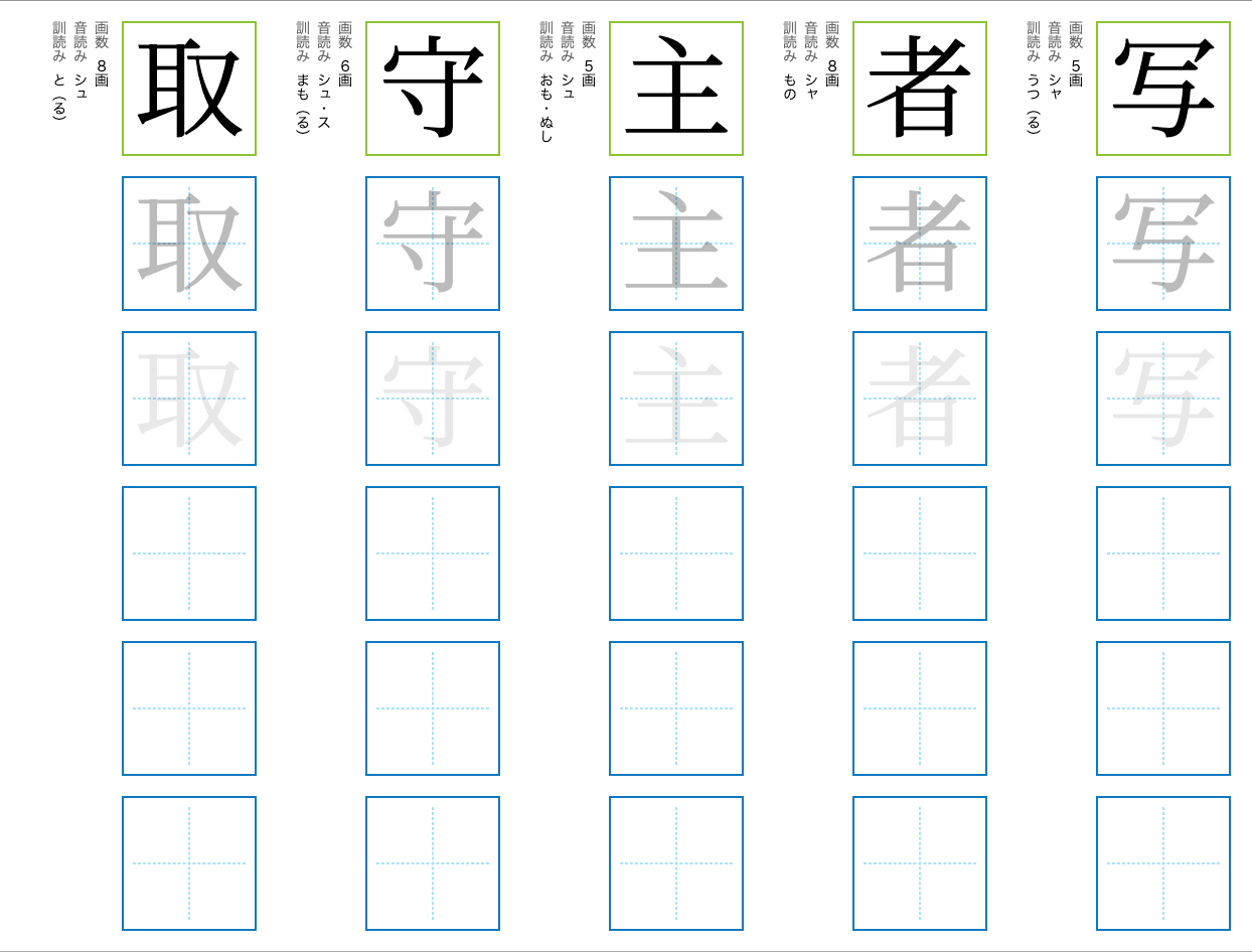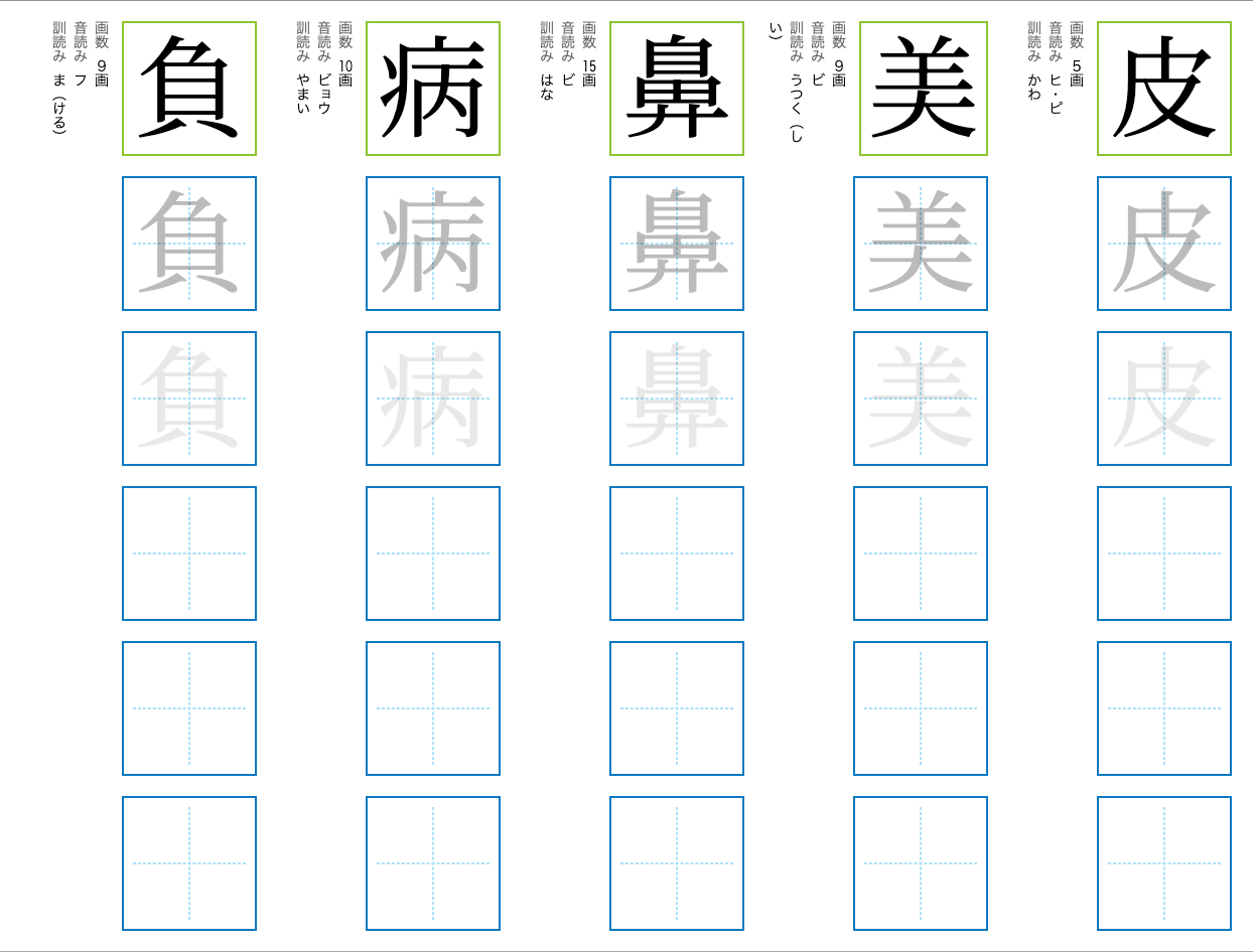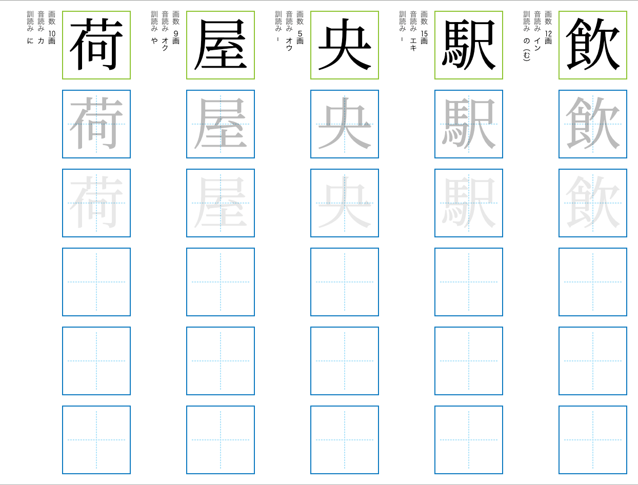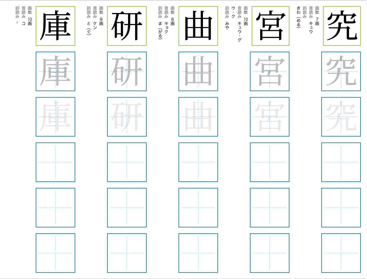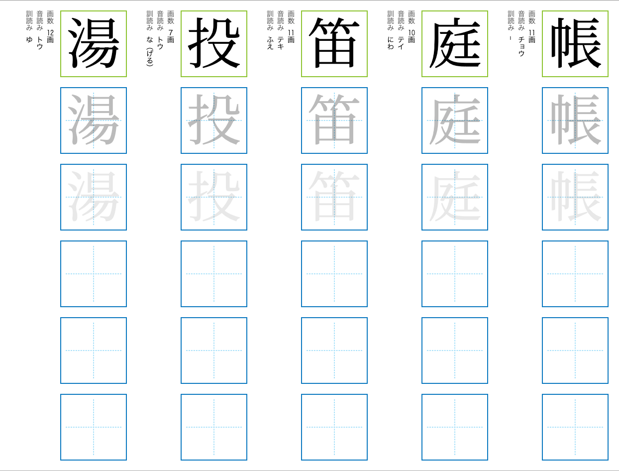 1学期から3学期まで順を追って練習していく際に、特定の漢字を選んで学習プリントを印刷することができます。