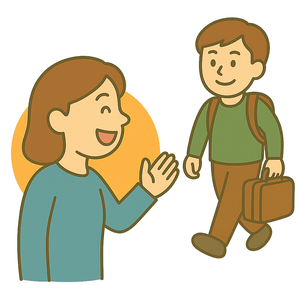 笑顔で人を送り出す(おくりだす)。