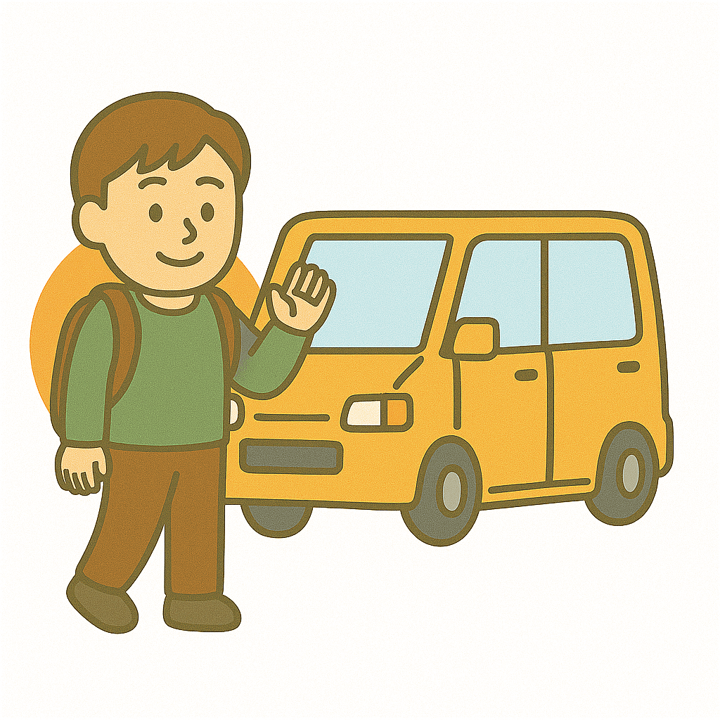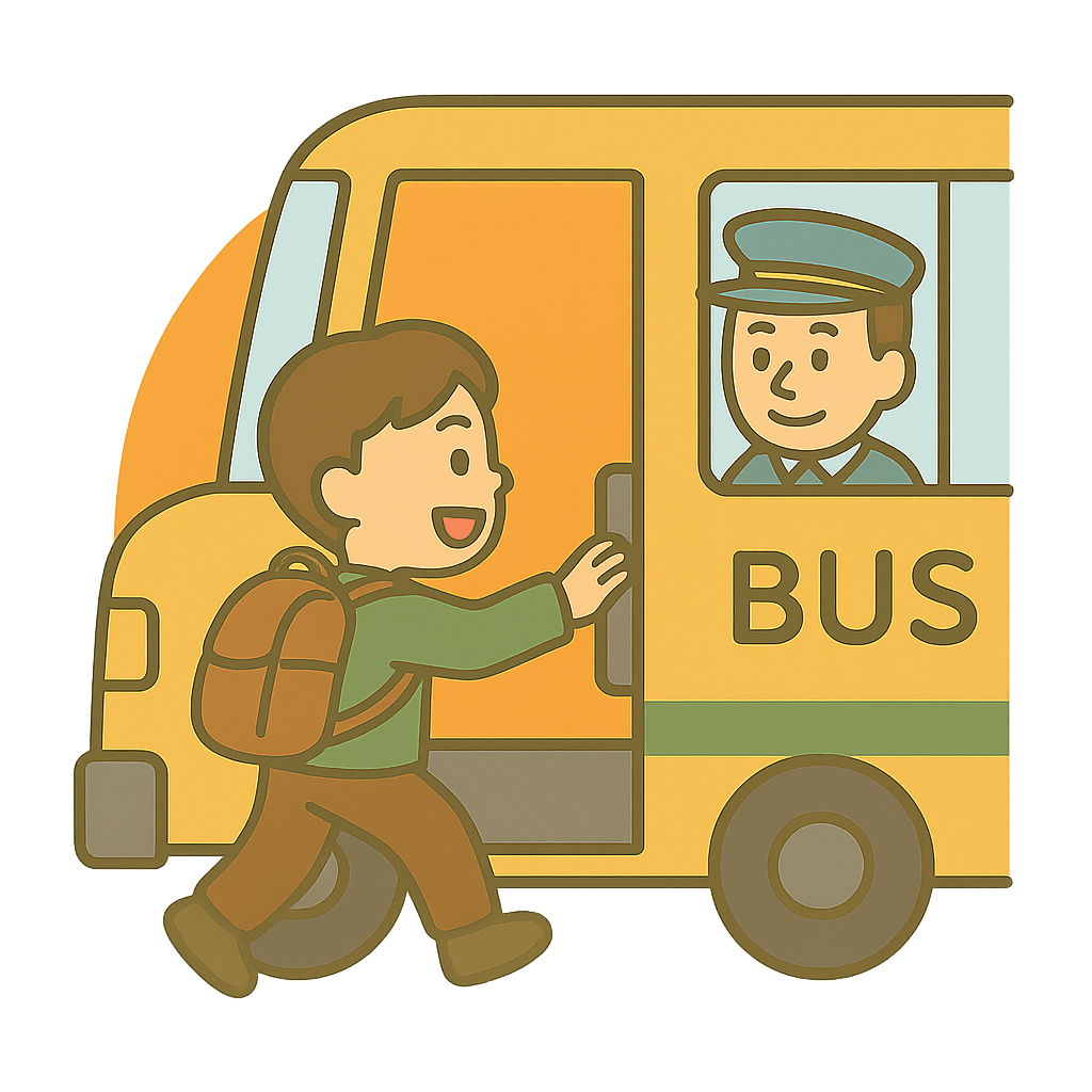 送迎(そうげい)バスにのる。