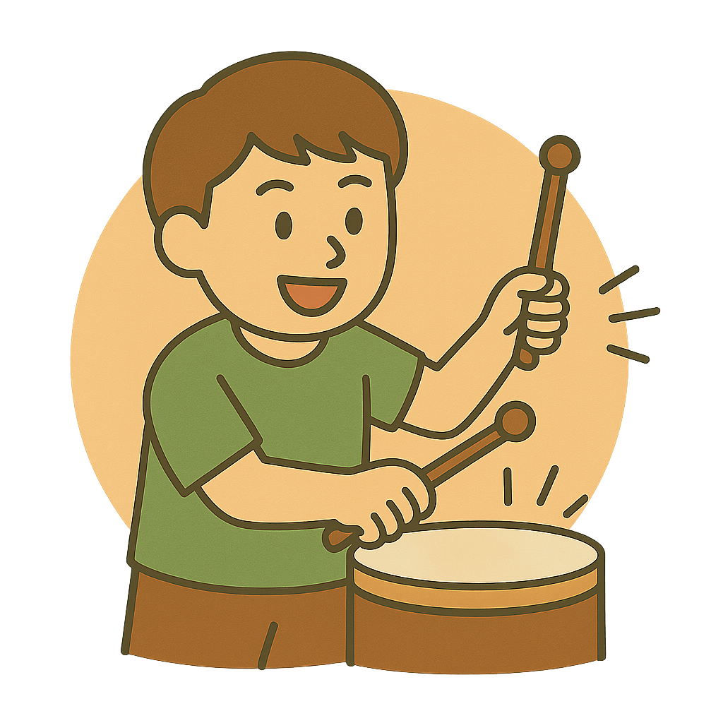 打楽器(だがっき)をえんそうする。