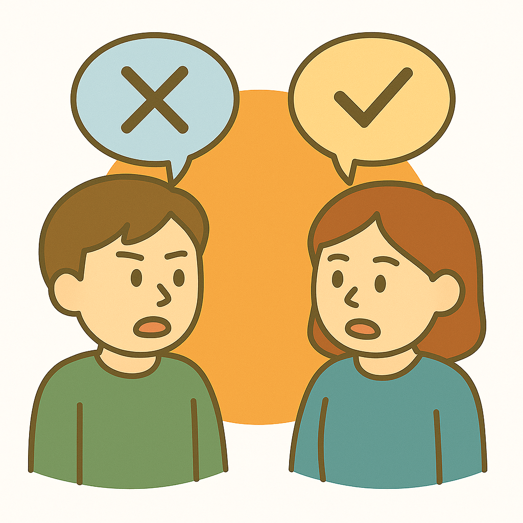 反対(はんたい)のいけんを聞く。