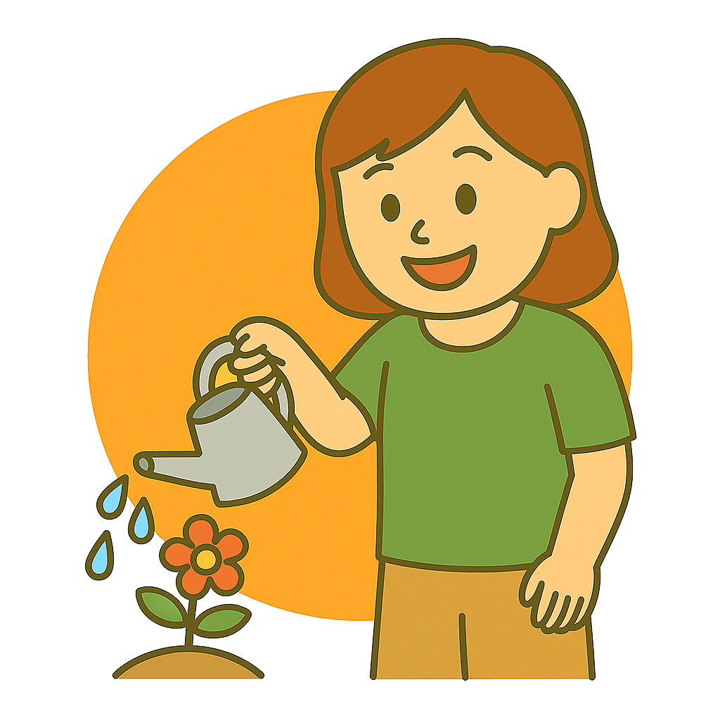 花に水を注ぐ(そそぐ)。