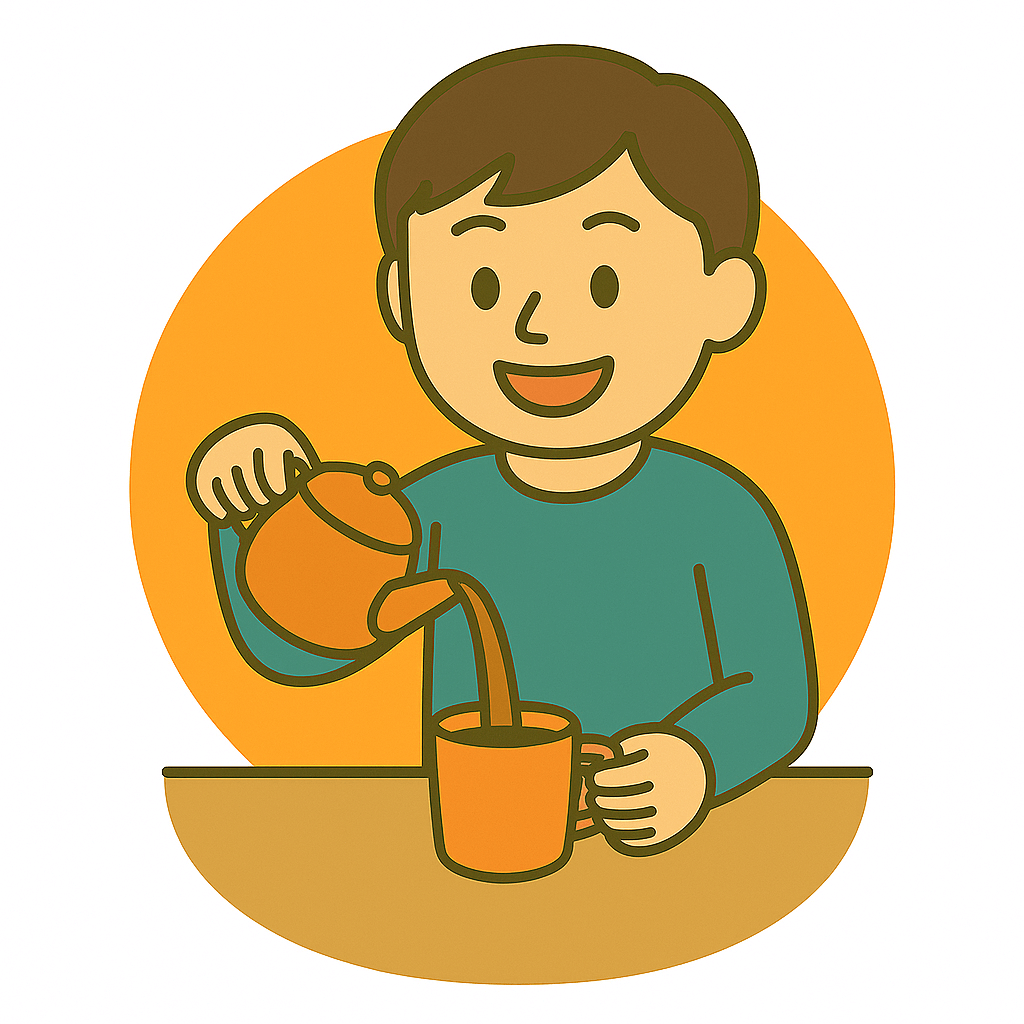 おちゃをコップに注いだ(そそいだ)。