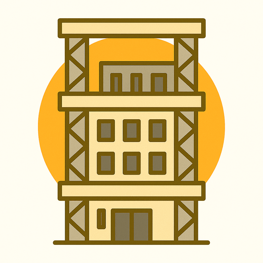 鉄筋(てっきん)コンクリートの建物はじょうぶだ。