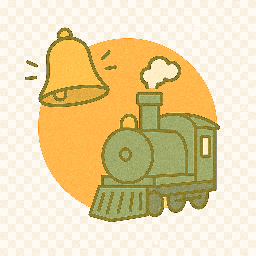 きしゃの発車(はっしゃ)ベルがなった。