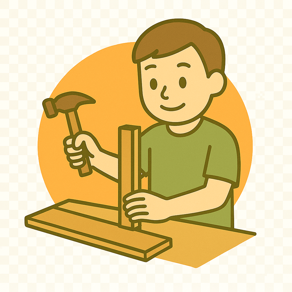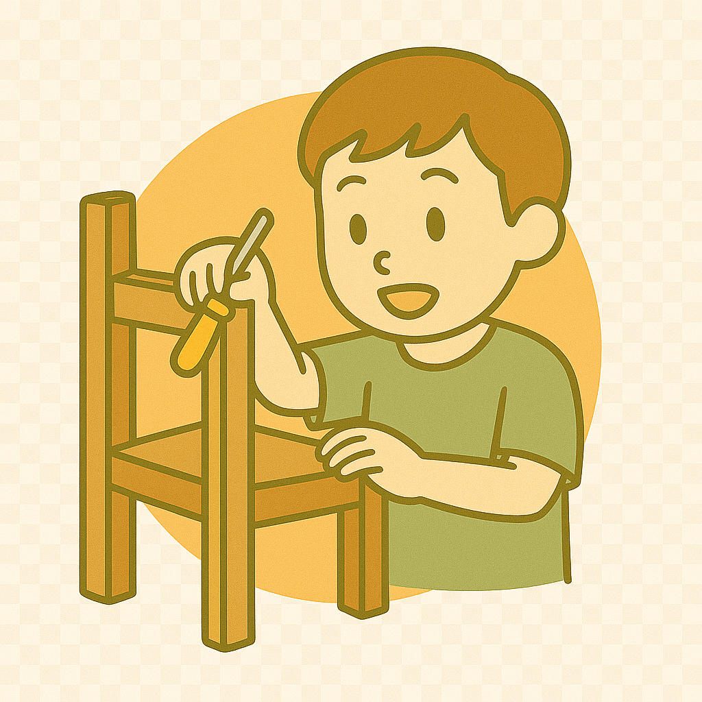 木の板(いた)でいすを作る。