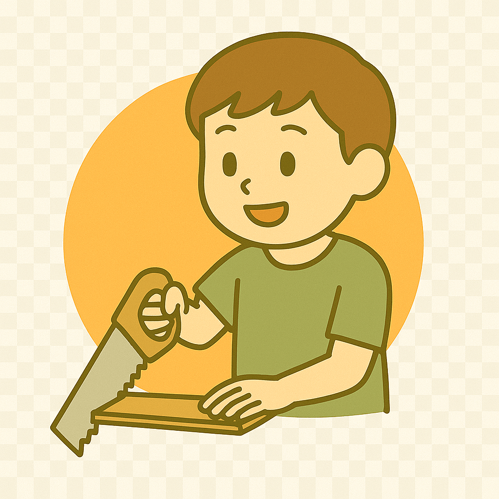 うすい板(いた)を切って小物をつくる。