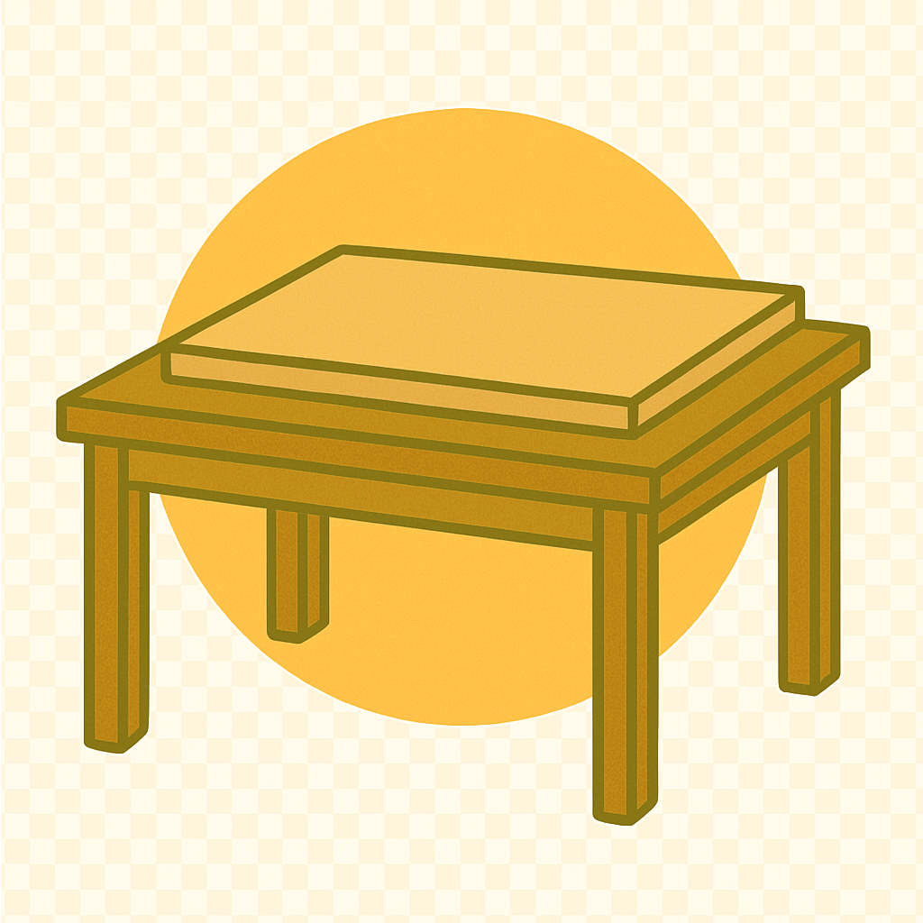 つくえの上に板(いた)をのせる。