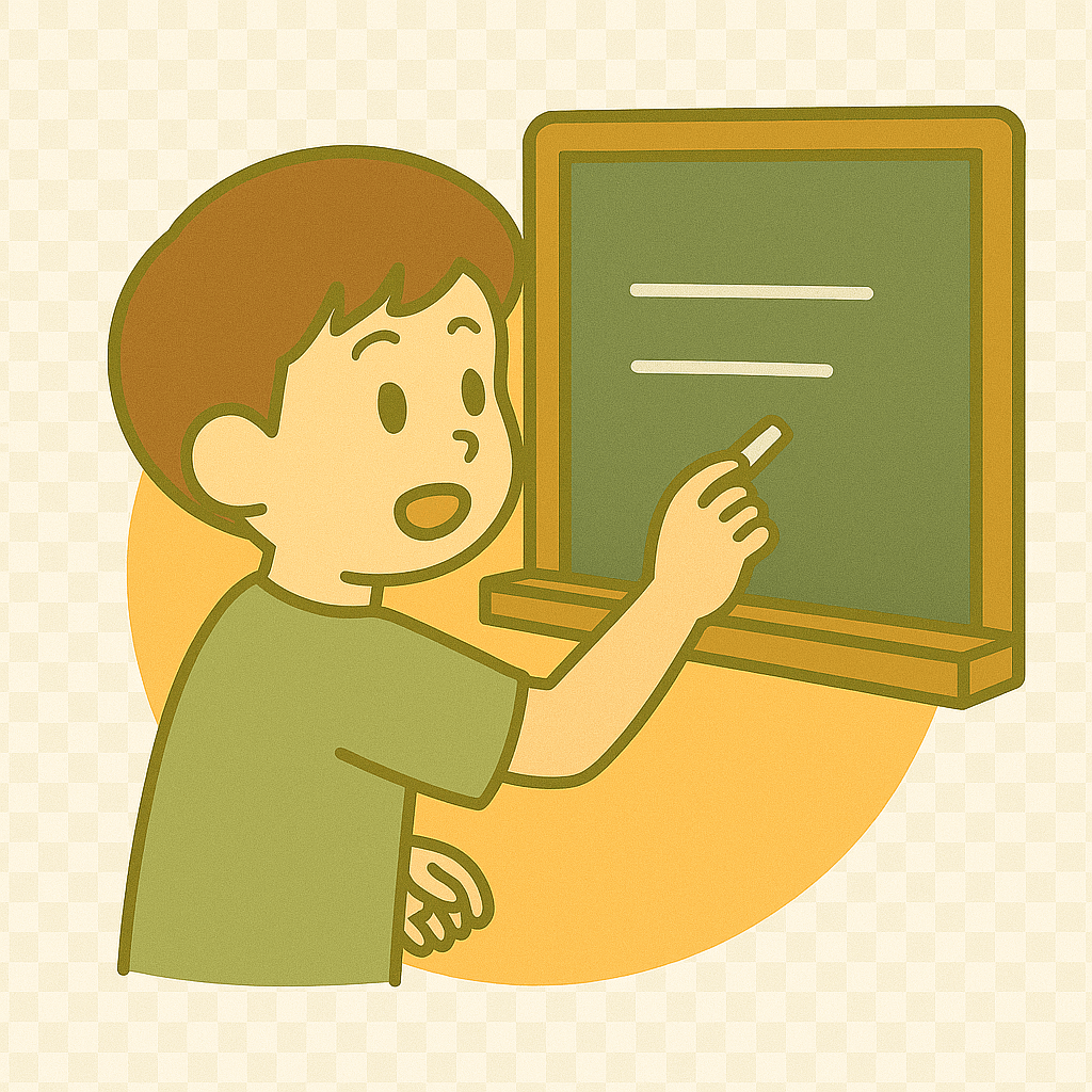 学校の黒板(こくばん)に字を書く。