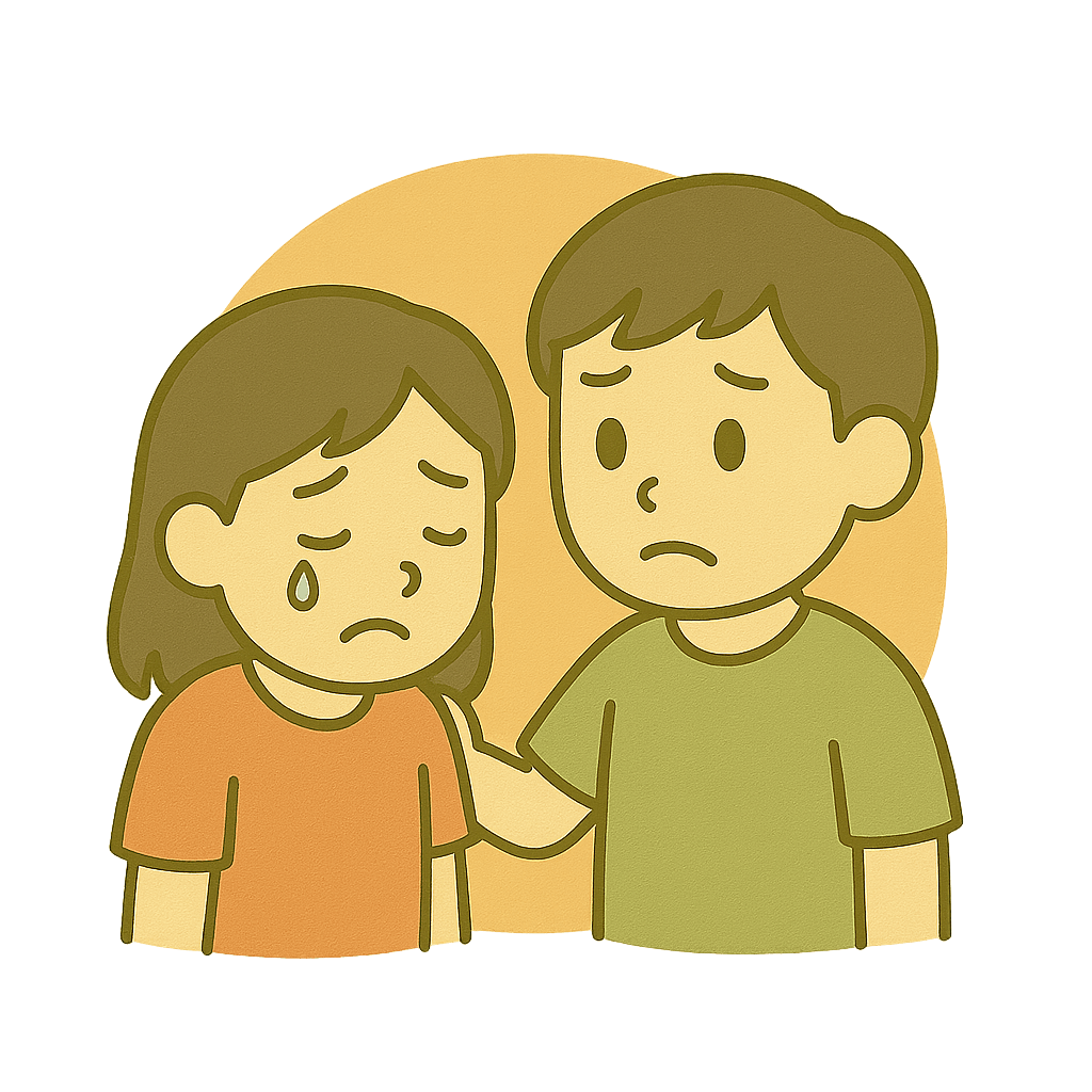 友だちの悲しみ(ひ)をわかちあうことが大切です。