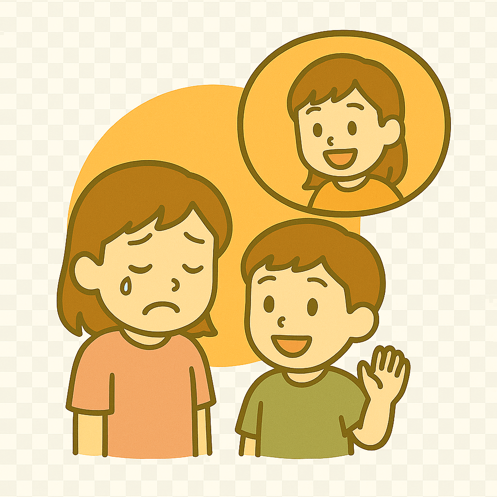友だちとわかれて悲しい(かなしい)気もちになったけど、また会えるとうれしい。