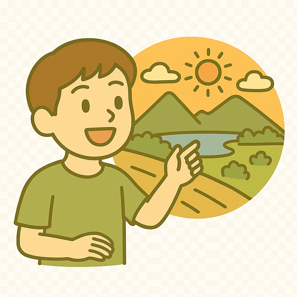 美術(びじゅつ)の時間に楽しく絵をかいた。