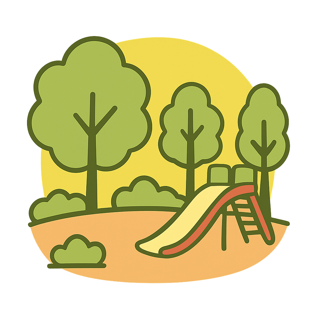こうえんに緑(みどり)がいっぱい。