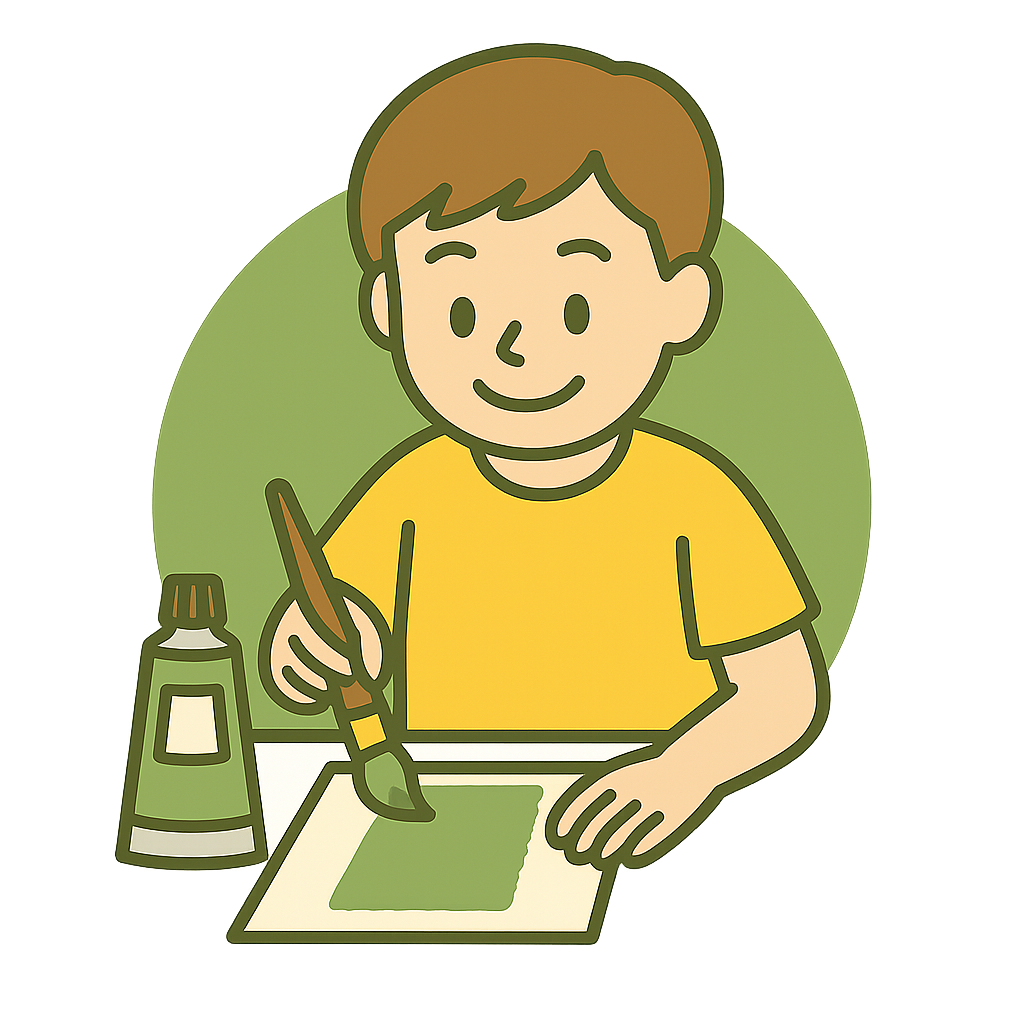 えのぐで緑(みどり)をぬる。