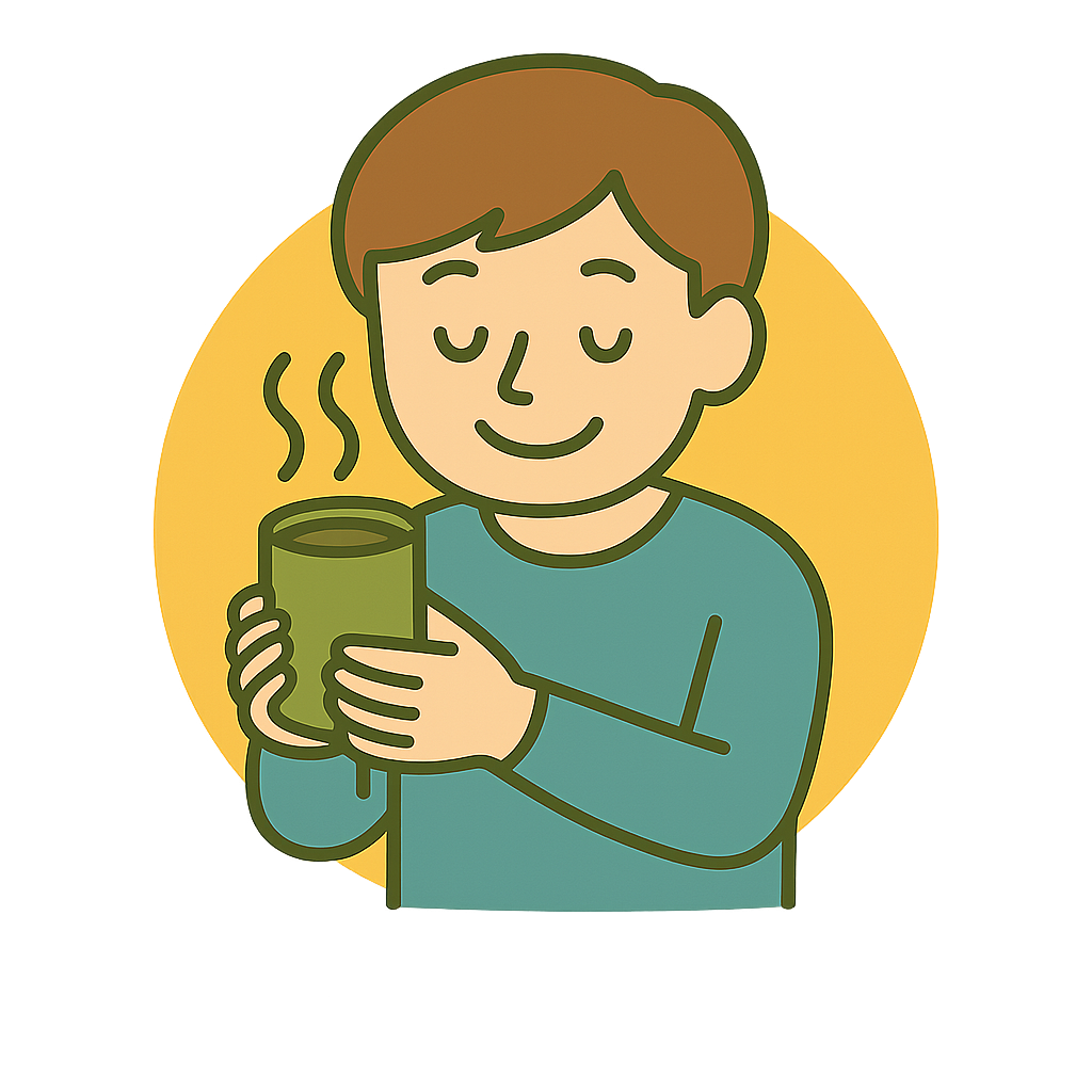 緑茶(りょくちゃ)をのんでほっとする。