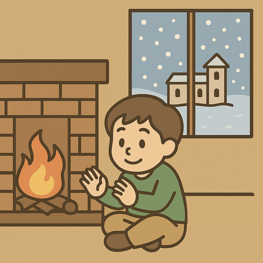 外は雪が降っていて遠くに館(やかた)が見えた。