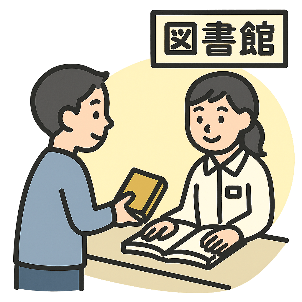 図書館(としょかん)で本をかりる。
