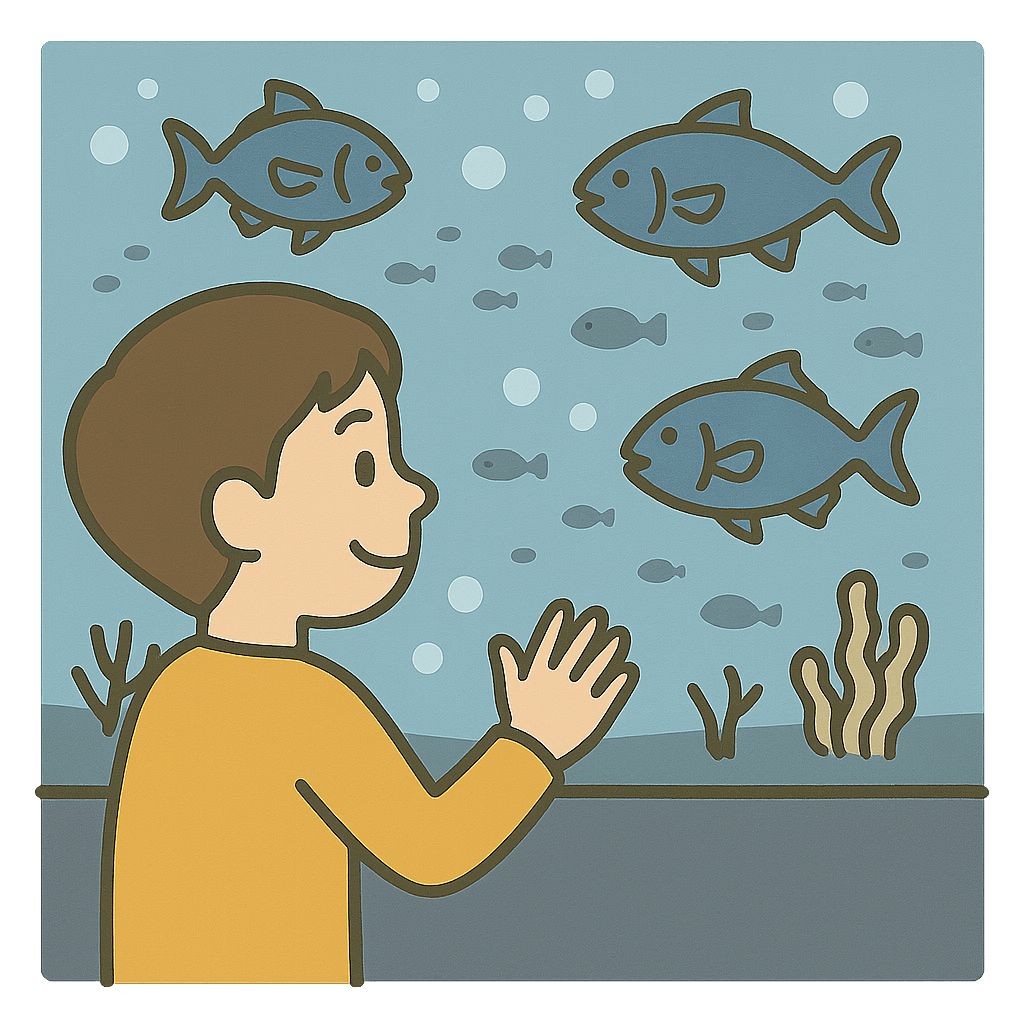 水族館(すいぞくかん)に行って魚を見た。