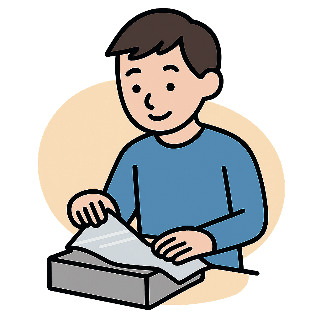 銀紙(ぎんがみ)でプレゼントをつつむ。