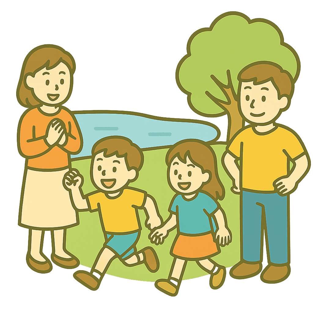 湖畔公園(こはんこうえん)で家族と遊ぶ。