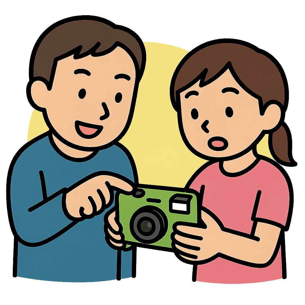 使い捨て(つかいすて)のカメラを持っていく。