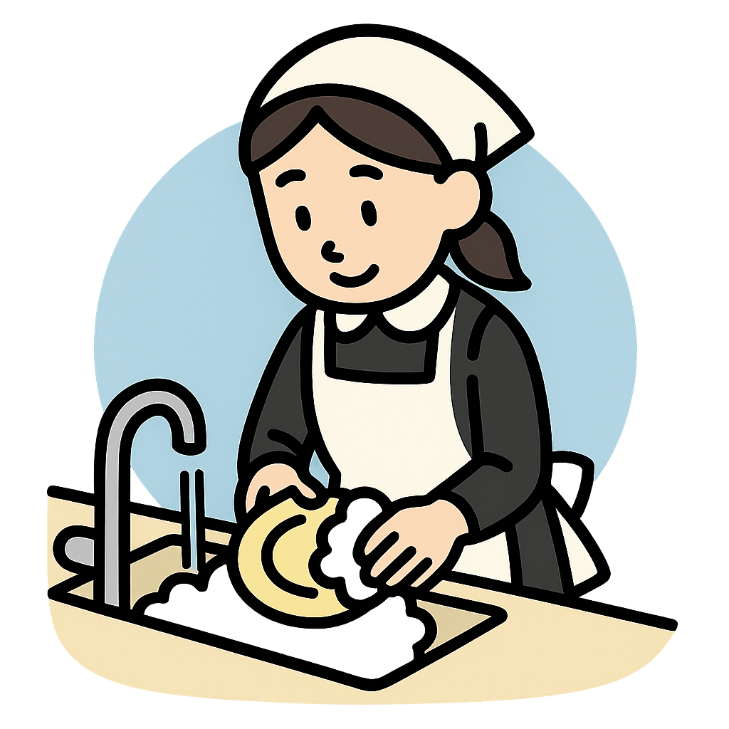 使用人(しようにん)が家事を手伝っている。