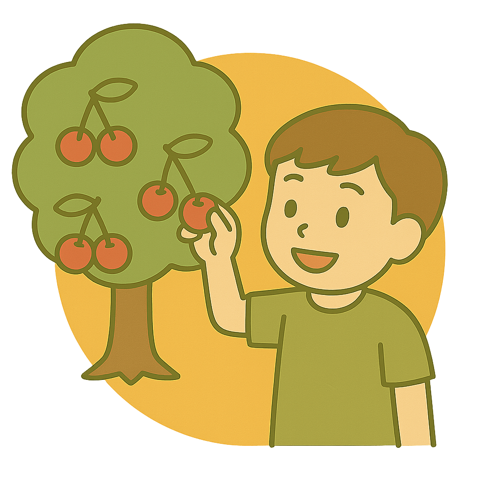 さくらんぼの実をとる(みをとる)。
