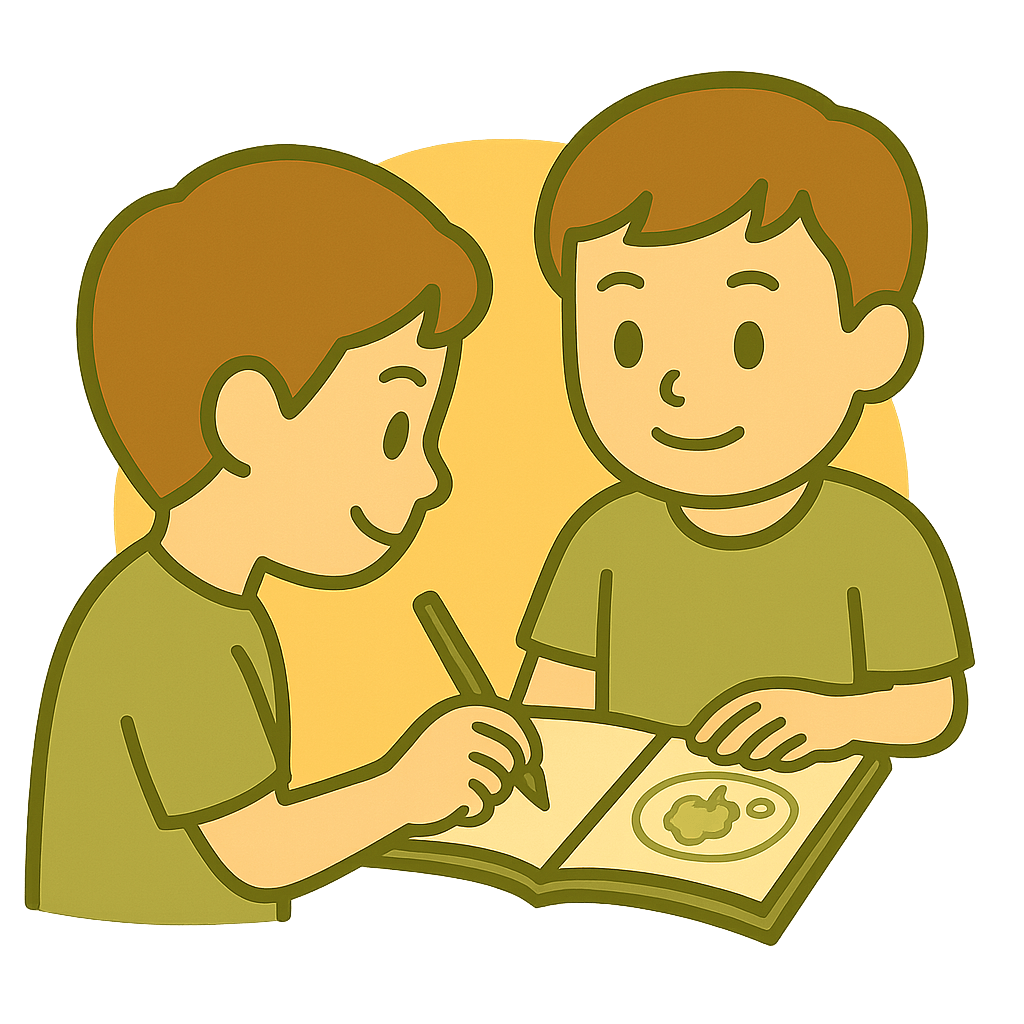 友だちのノートを写して(うつして)ふくしゅうする。