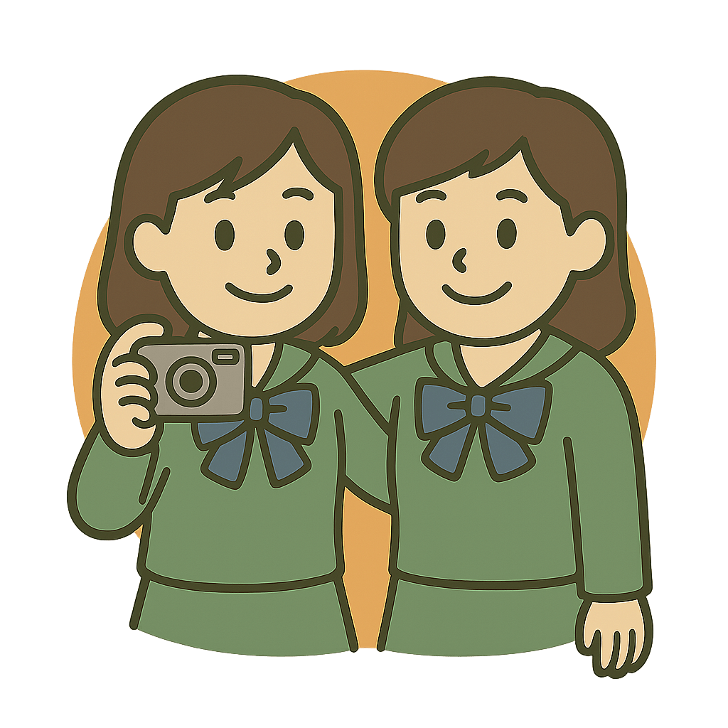 終業式(しゅうぎょうしき)で友だちと写真を撮った。