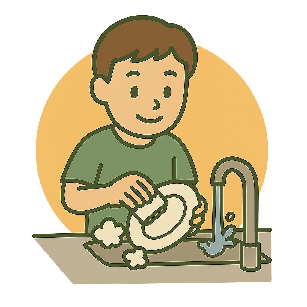 台所(だいどころ)でおてつだいをする。
