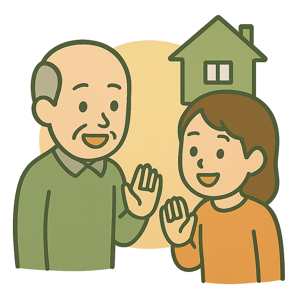 近所(きんじょ)の人にあいさつする。