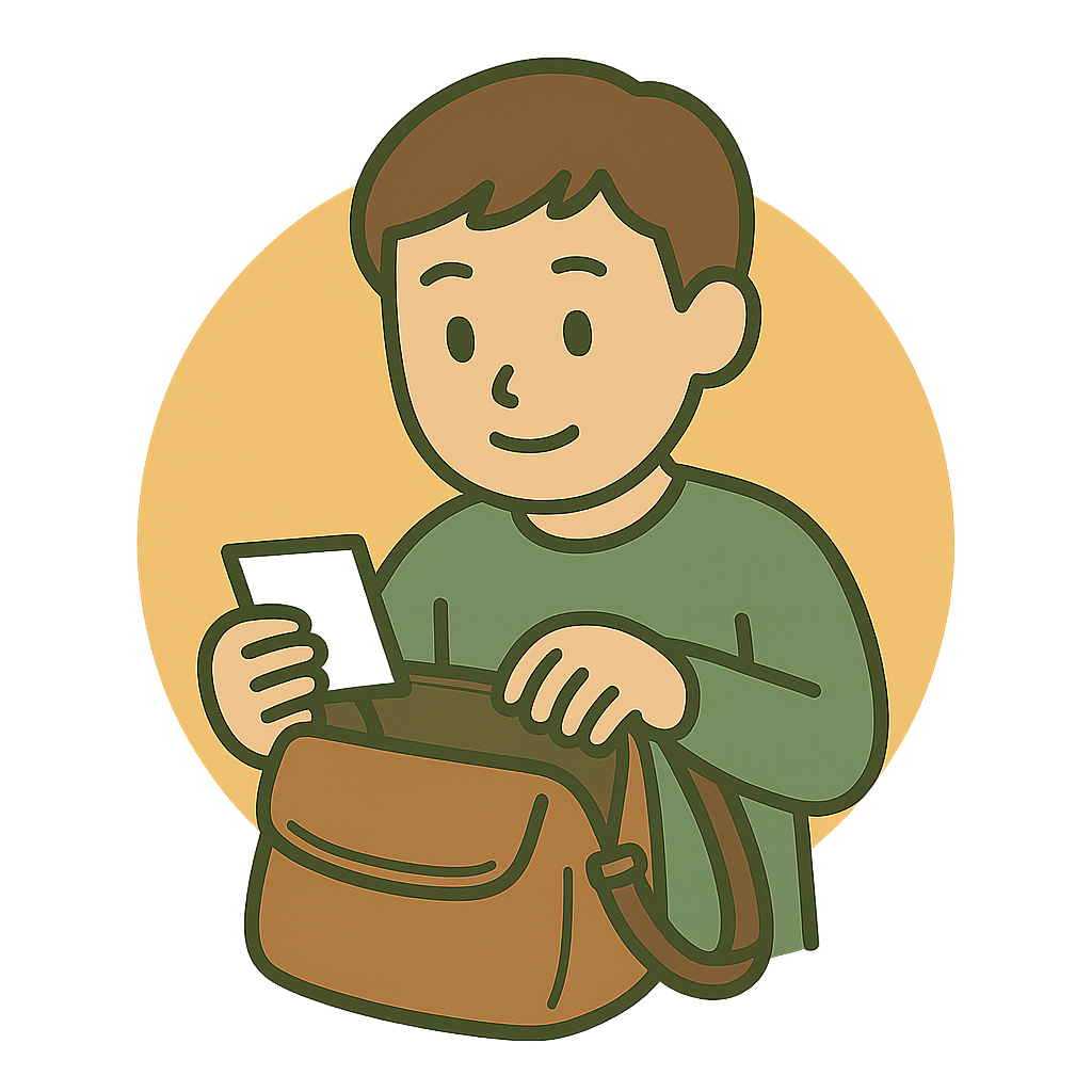所持品(しょじひん)をかくにんする。