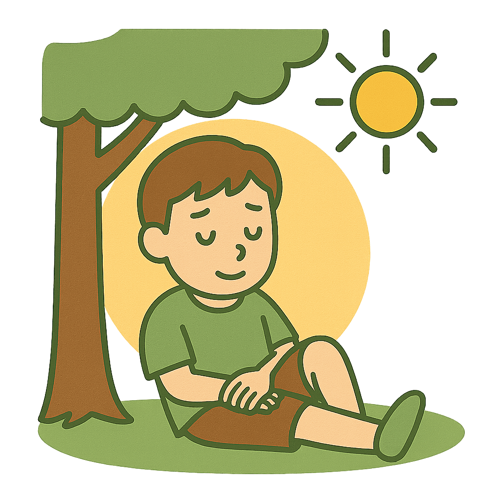 暑い(あつい)日には日かげでやすもう。