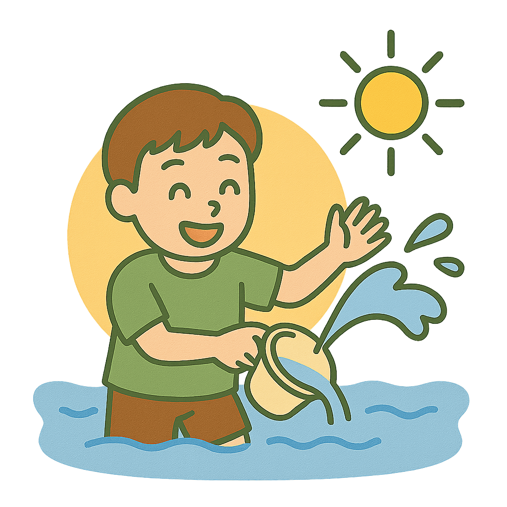 きょうはとても暑くて(とてもあつくて)水あそびをした。