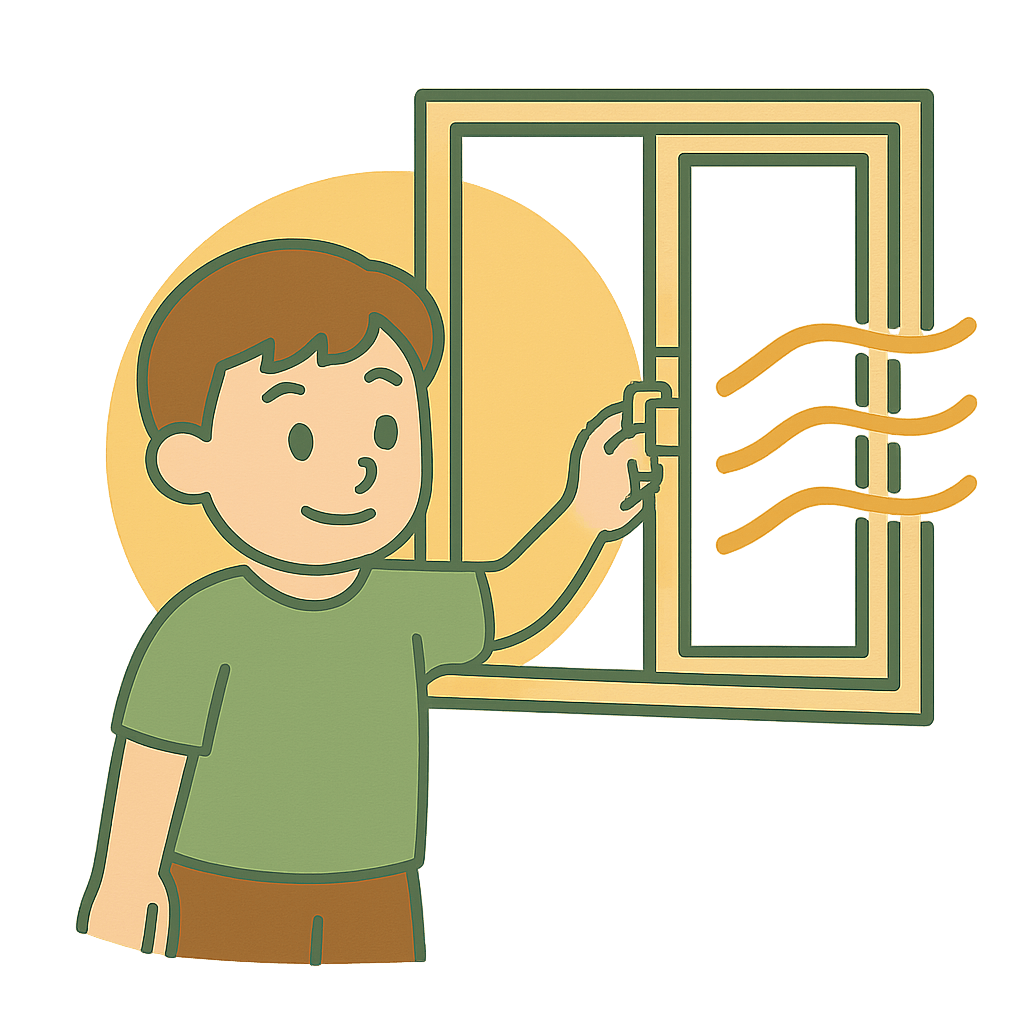 暑い空気(あついくうき)がこもらないようにまどをあける。