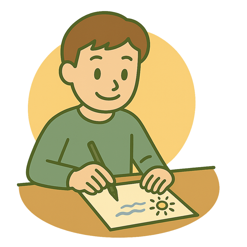 暑中(しょちゅう)見まいの手がみを書く。
