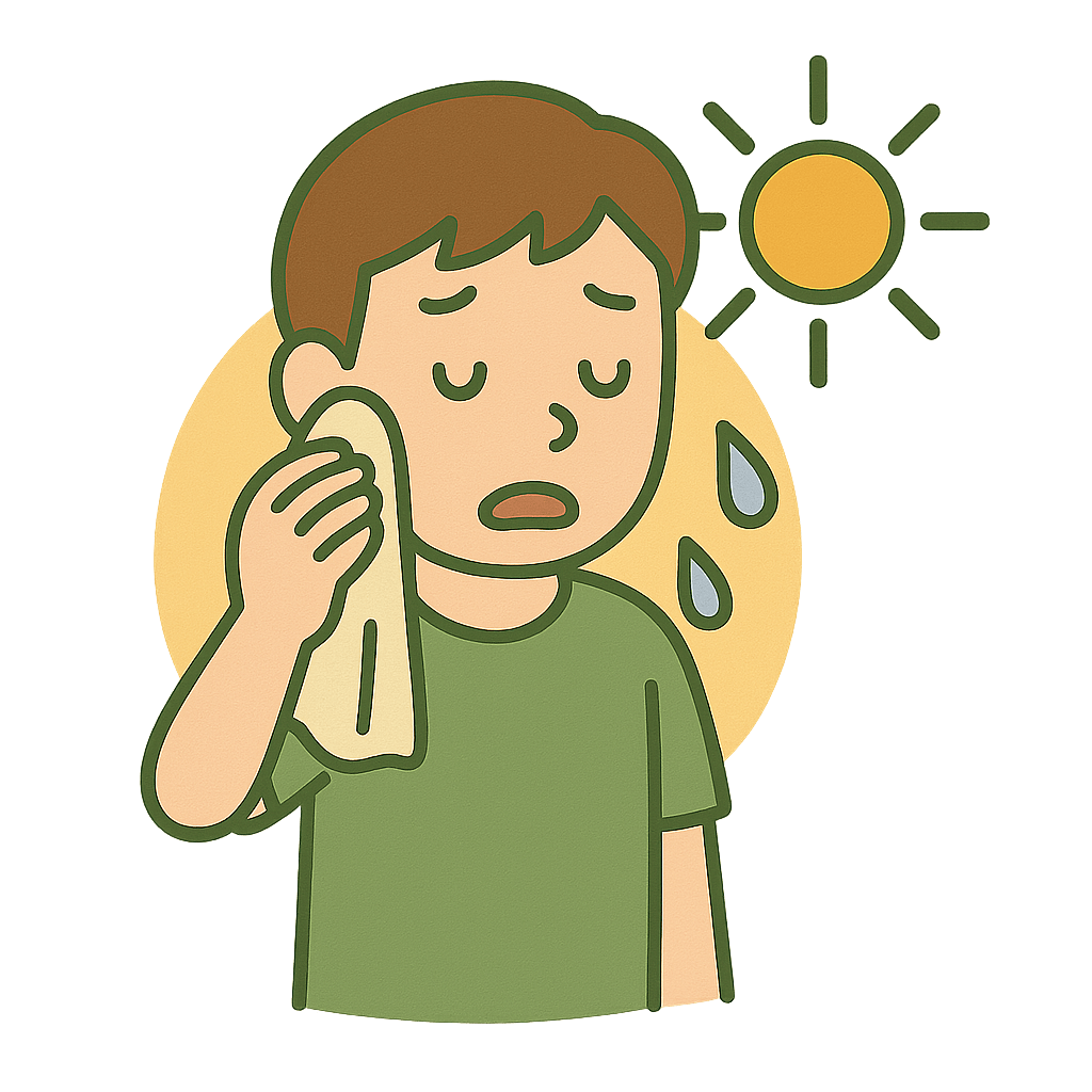 猛暑(もうしょ)でも元気に外で遊ぶ。
