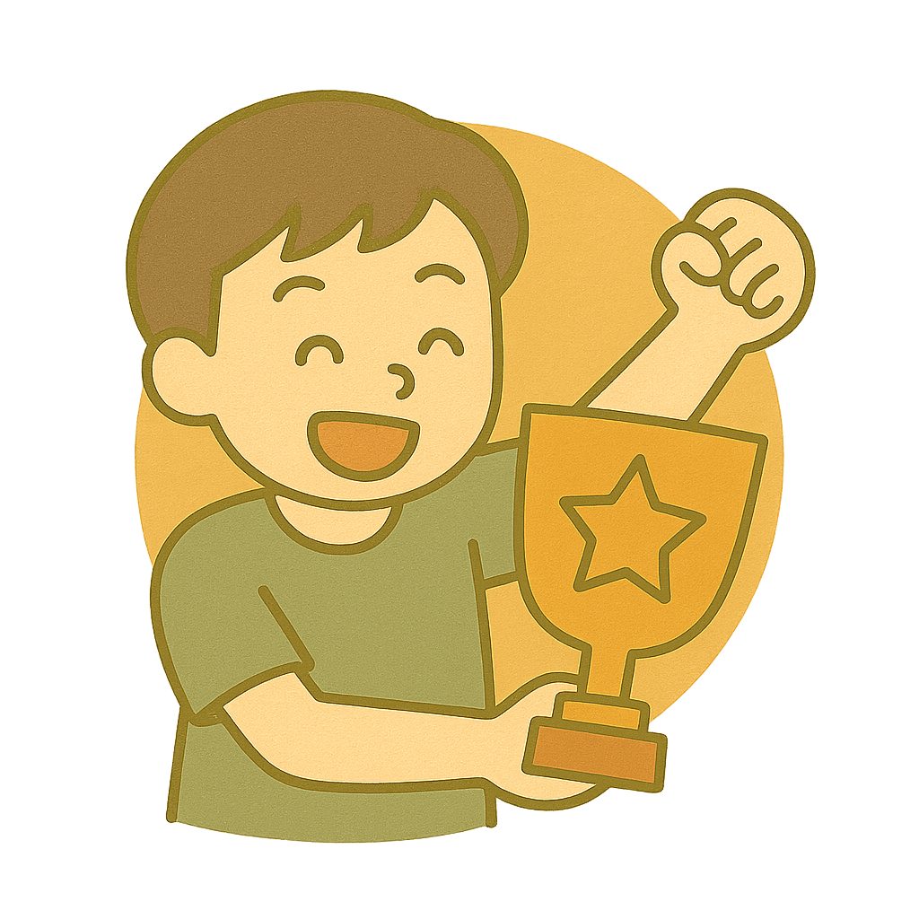 がんばった人がさいごに勝つ(かつ)。