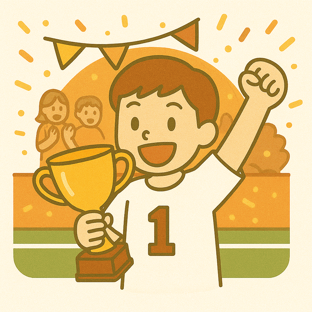 運動会で優勝(ゆうしょう)した。