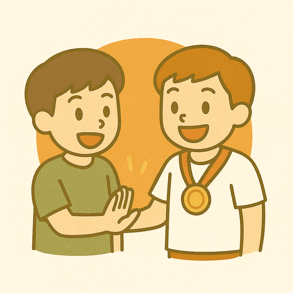 勝者(しょうしゃ)におめでとうを言う。