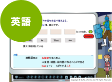 先生役のアニメーションキャラクターと一緒に、一人ひとりの理解度に合わせて進めることができるアダプティブなICT教材です。