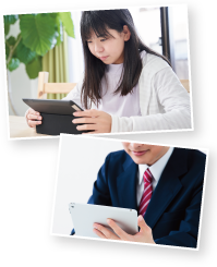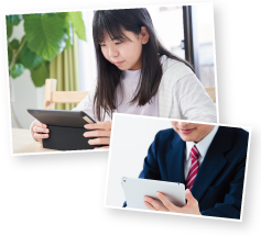 すららはPC・タブレットで学習できるマルチデバイス対応のオンライン教材です。インターネット環境とPC・タブレットがあればどこでも受講できます。