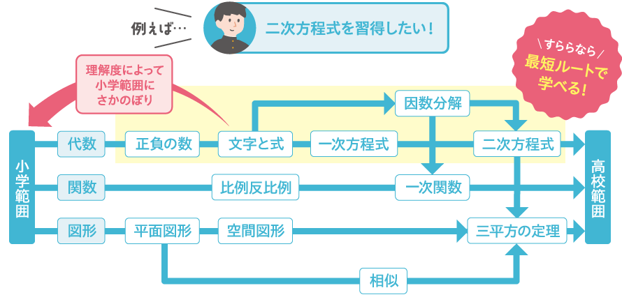 中学の数学範囲の体系学習イメージ